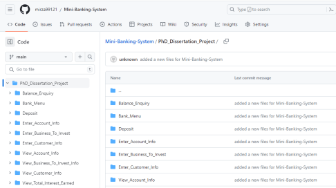 9.2 Mini-Banking-System code in GitHub