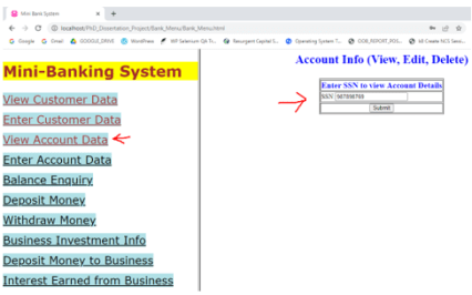 Below form is used to view bank customer data